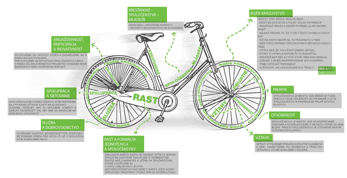 Našou víziou je, aby v každom meste a obci na Slovensku boli mládežnícke spoločenstvá, prinášajúcepravé hodnoty a život do všetkých oblastí spoločnosti. To vystihuje aj náš slogan