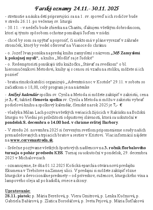 | Kamil Ščerba uploaded a new document, 24.11..png, in Gréckokatolícka farnosť Nanebovstúpenia Pána Vojčice. |