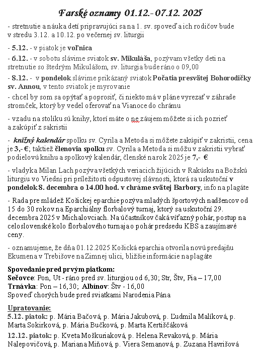 | Kamil Ščerba uploaded a new document, 01.12..png, in Gréckokatolícka farnosť Nanebovstúpenia Pána Vojčice. |