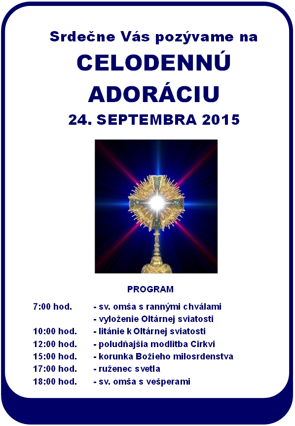 Srdečne vás pozývame na CELODENNÚ ADORÁCIU 24. septembra 2015