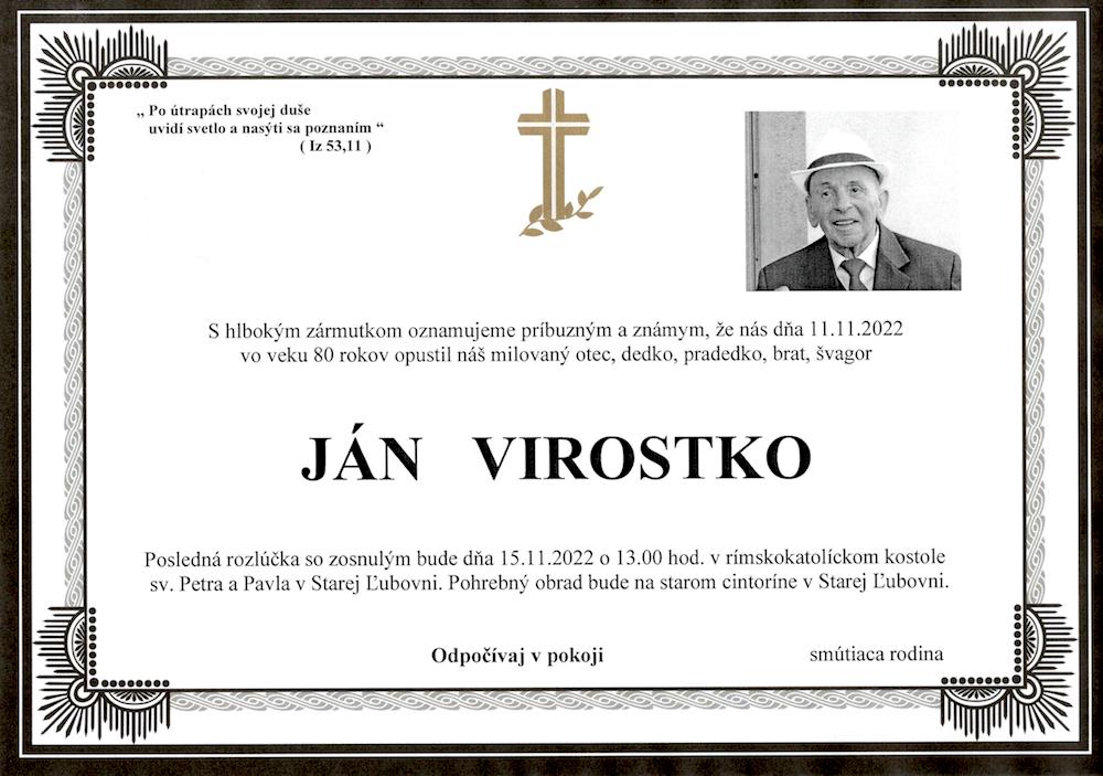 Zomrel pán kostolník Ján Virostko