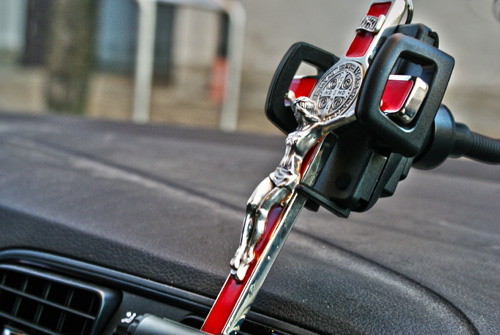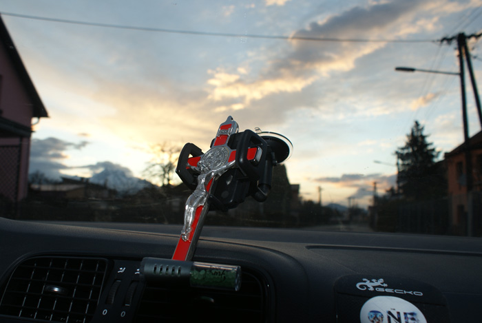 Nedávno som nakladal aparatúru na akciu. Auto natrepané reprákmi, káblami a roznymi vecami - ako sa hovorí - nebolo už ani kam hrach hodiť. Zvyknem so sebou brávať Sväté písmo a kríž a to aj vtedy, keď nemám službu práve ja. (slovo, vyučovanie, modlitbu) Nevedel som nájsť dôstojné miesto pre kríž a vtom mi padol pohľad na držiak navigácie. Vyskúšal som a zrazu som sa na ten kríž pozrel akýmsi novým pohľadom - Ježiš ma vedie životom - je navigáciou na mojich cestách.
