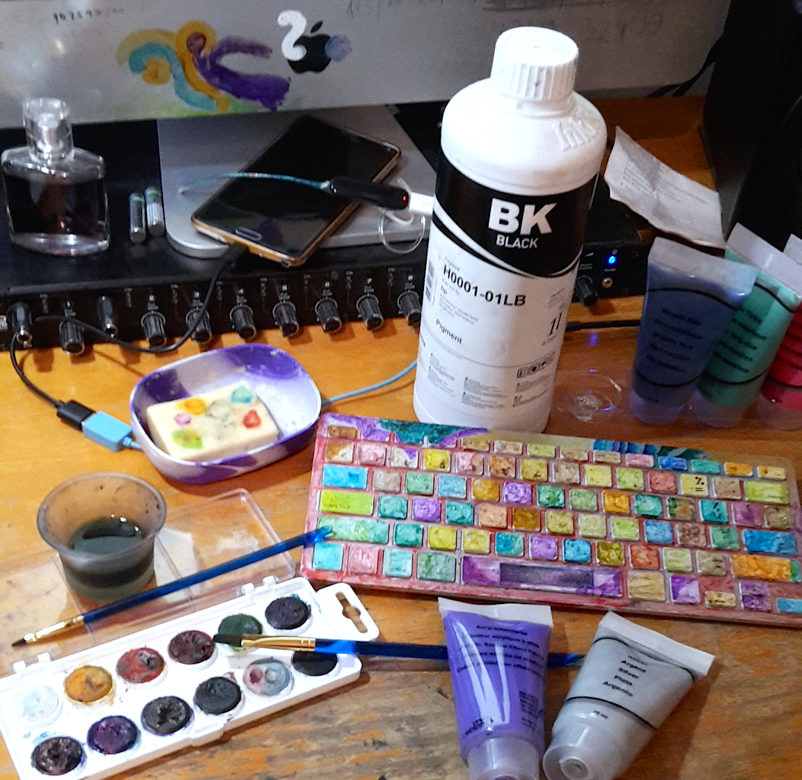 (vidno farby - akry, pigment aj vodovky)