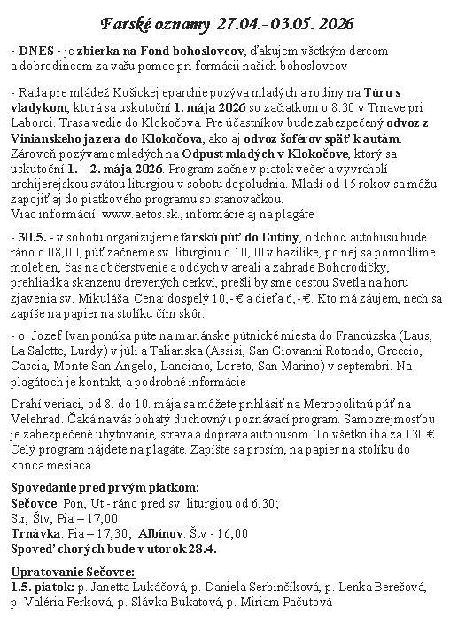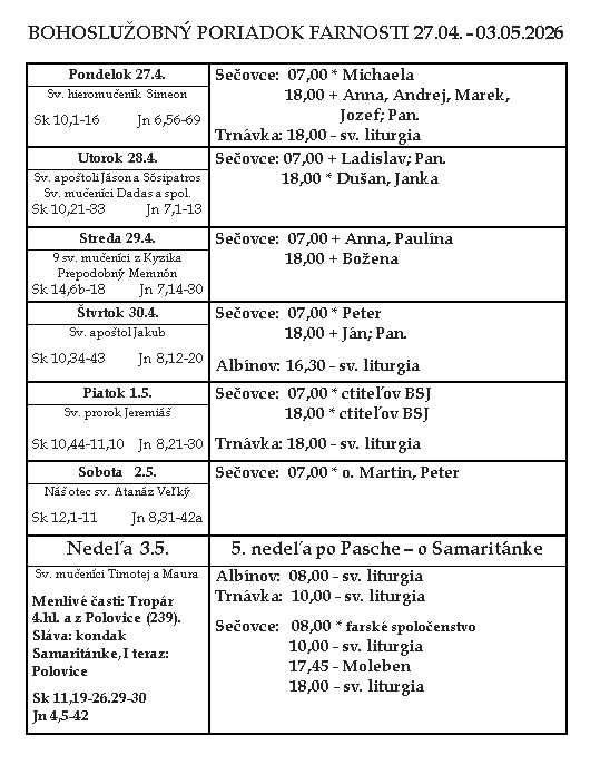| Kamil Ščerba uploaded a new document, 27.04..png, in Gréckokatolícka farnosť Nanebovstúpenia Pána Vojčice. |