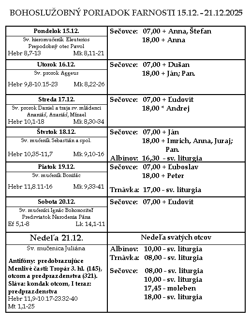 Liturgie ⁜ Gréckokatolícka farnosť Sečovce