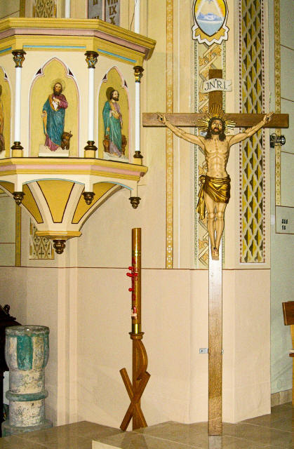Pokračovanie v prácach v interiéri kostola; umiestnenie oltárneho kríža