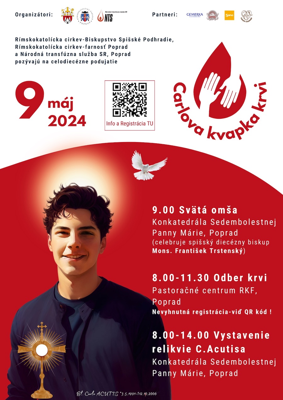 Biskupstvo Spišské Podhradie pozýva skúsených, no najmä prvodarcov krvi ako aj širokú verejnosť z celej diecézy na podujatie pod názvom CARLOVA KVAPKA KRVI pri príležitosti 33. výročia narodenia bl. Carla ACUTISA – prvého mileniála, ktorý bol vyhlásený za blahoslaveného.